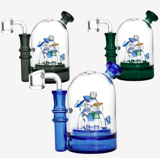 The Colours Rotating Perc Dab Oil Rig has a height of 5.5 inches and comes with a 14mm joint size that allows for easy attachment and detachment of the bowl. It features three lines that may serve as percolators to help filter smoke and deliver a smooth hit. The rotating feature adds a fun element to the experience while allowing for easy handling and control of the bong. It’s designed for use with oils and dabs, making it a perfect accessory for those who enjoy concentrate smoking. The color of the rig may vary depending on the manufacturer or retailer.