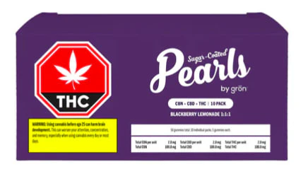 Pearls by Grön Blackberry Lemonade is now in a grab n’ go 10-pack box, with 10 individual tubes each holding five sugar-coated soft chews. Every gummy carries a 1:1:1 ratio with 2mg THC, 2mg CBD, and 2mg CBN. That’s 100mg of each cannabinoid in total. Bursting with the tart sweetness of blackberries and the citrus pop of lemonade, these Pearls bring fruit-forward flavour in a format made for sharing or stocking up.