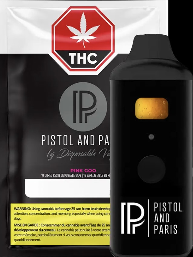 The Pistol and Paris Pink Goo Cured Resin Disposable Vape Pen offers a smooth, flavourful experience with notes of earthy berries, sweet pine, and subtle herbal spice.