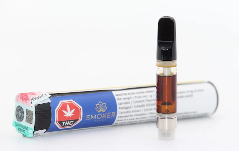 Co2-extracted Master Kush Ultra Honey Oil Cartridge is clear, bright amber in colour, and has flavours of old-school kush and gas.
