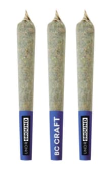 From the award-winning team at Valhalla flower comes the Undrground - Violator Kush Hash-Infused Pre-Rolls. These are a tribute to BC’s cannabis heritage, combining legendary genetics with old-school hash for a bold, elevated smoke. Made with Violator Kush flower (Hindu Kush x Malana) and infused with solventless bubble hash, this three-pack delivers rich flavour and that unmistakable legacy vibe. Expect notes of sharp pine, earthy spice, and classic gas, all layered over a smooth, heavy-hitting indica profile. The flower is grown under high-intensity LEDs, hang-dried, slow-cured, and hand-trimmed to preserve terpenes and trichomes. Each joint is rolled using whole-bud milled flower. No shake, no trim, and infused with premium hash before being hand-finished to maintain consistency, airflow, and burn quality. Whether you’re chasing nostalgia or just want a seriously dank pre-roll, this is what Undrground is all about: No shortcuts. No compromise. Just legacy-quality flower, fire hash, and proper craftsmanship.